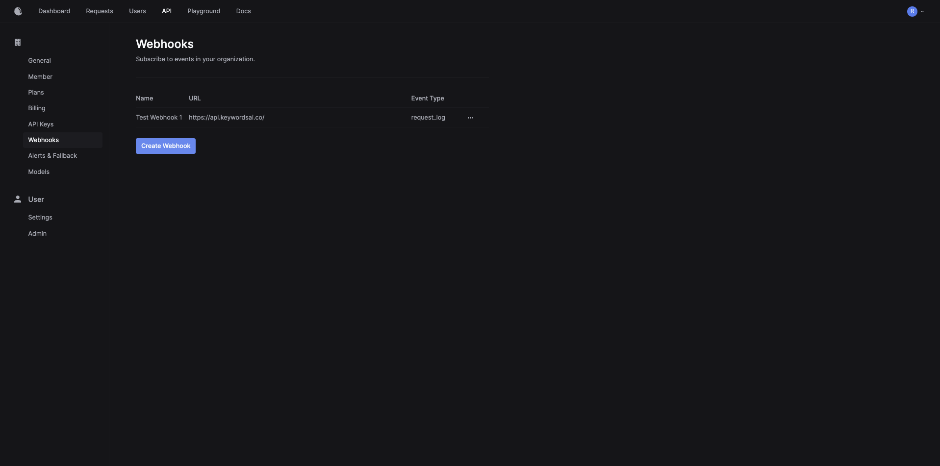 New request log(when an API call is logged). - Define the API Key you want to associate this webhook with. In this demo, it is an admin development key.