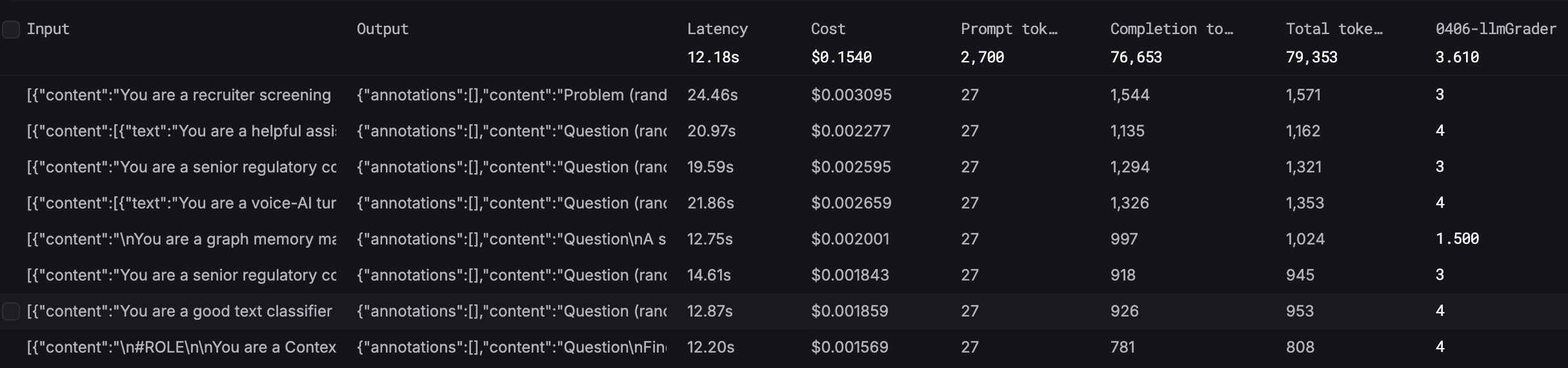 Create another experiment with the same dataset and evaluators, but select your new prompt version. Run it.