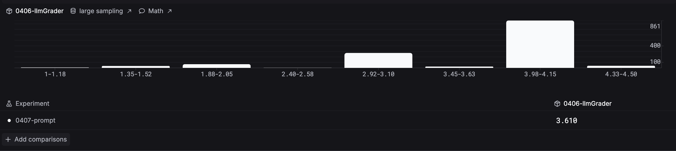 Open the Analytics tab in Experiments to compare evaluator score distributions across your experiments side by side.